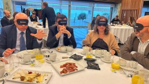 El evento trataba de una iniciativa de ILUNION para organizar esta jornada de Desayuno a Ciegas y acercarnos a conocer y comprender las barreras y limitaciones que a diario padecen las personas invidentes.
