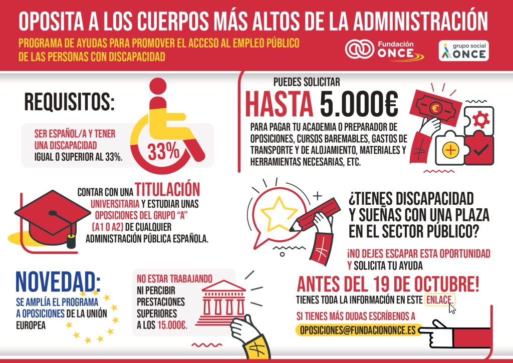 La Fundación ONCE abre la IV convocatoria del Programa de Ayudas para Promover el Acceso al Empleo Público de las Personas con Discapacidad 15 octubre 2025